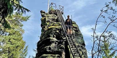 Das Bergmassiv des Katzsteins bei Cunnersdorf krönt der Katzfels, der es in unsere diesjährig Sammlung von „Gipfeln ohne -stein“ geschafft hat. Der Name soll an Wildkatzen erinnern, die in der Region bis ca. 1800 gelebt haben. Oben lässt sich einer der schönsten Blicke über die Sächsische und Böhmische Schweiz genießen.